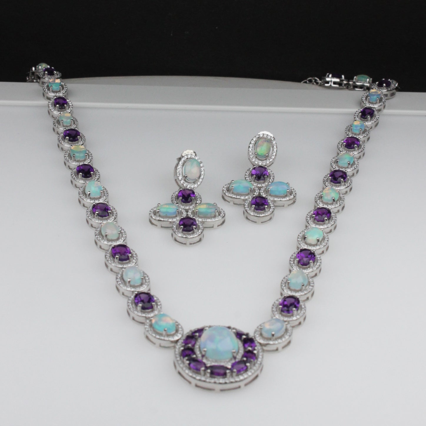 Amazing Amethyst Opal Sterling Silver Necklace Earrings Set