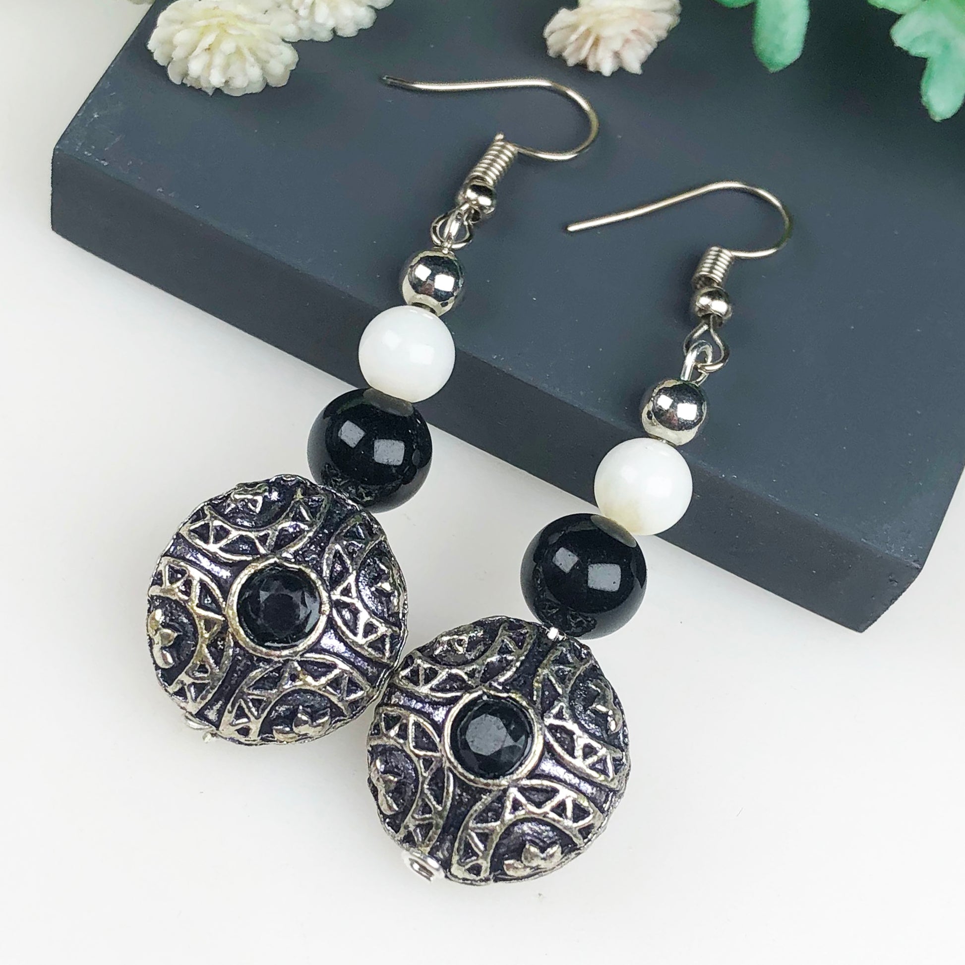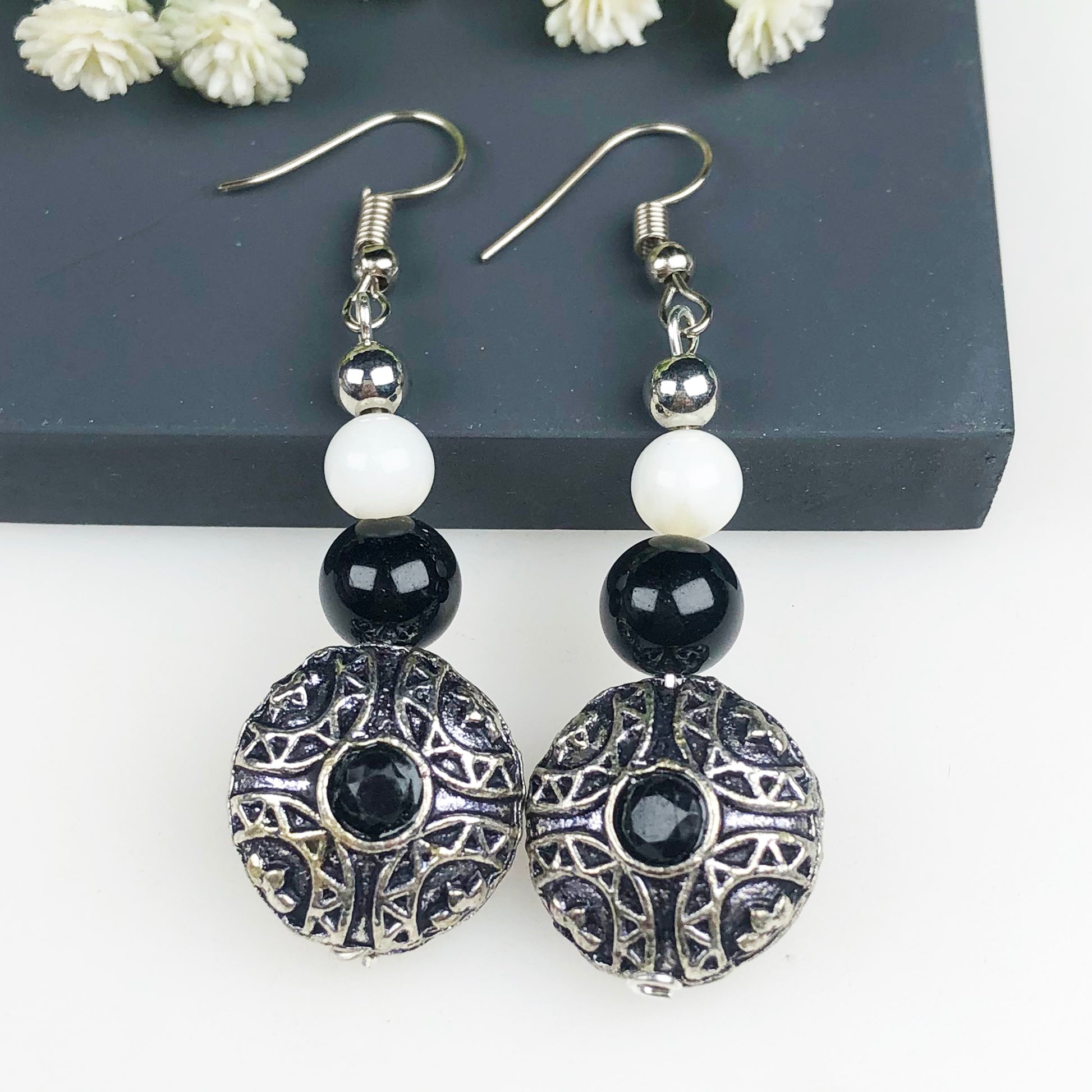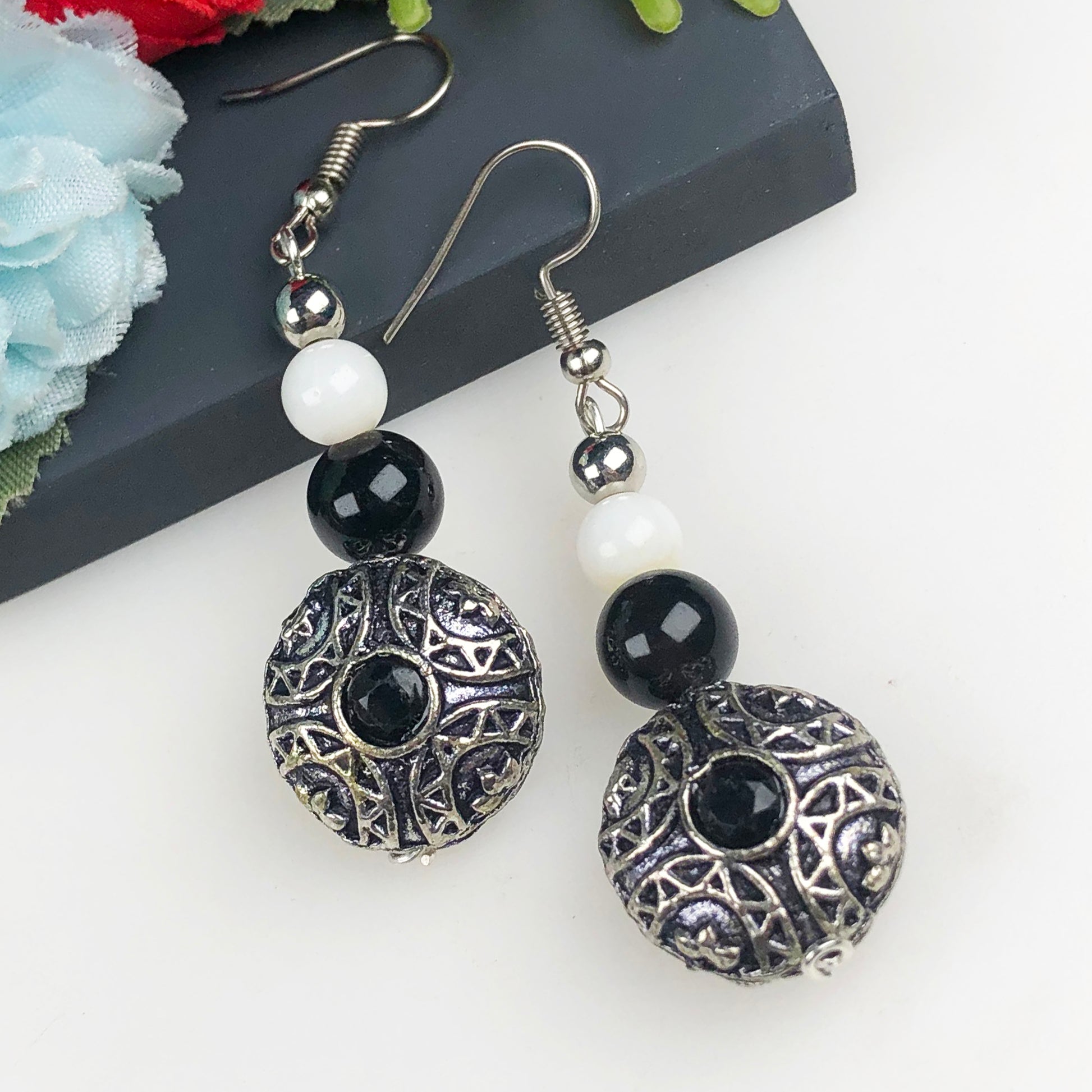 Natural Gemstone Dazzling Obsidian and Onyx Earrings for Women and Girls