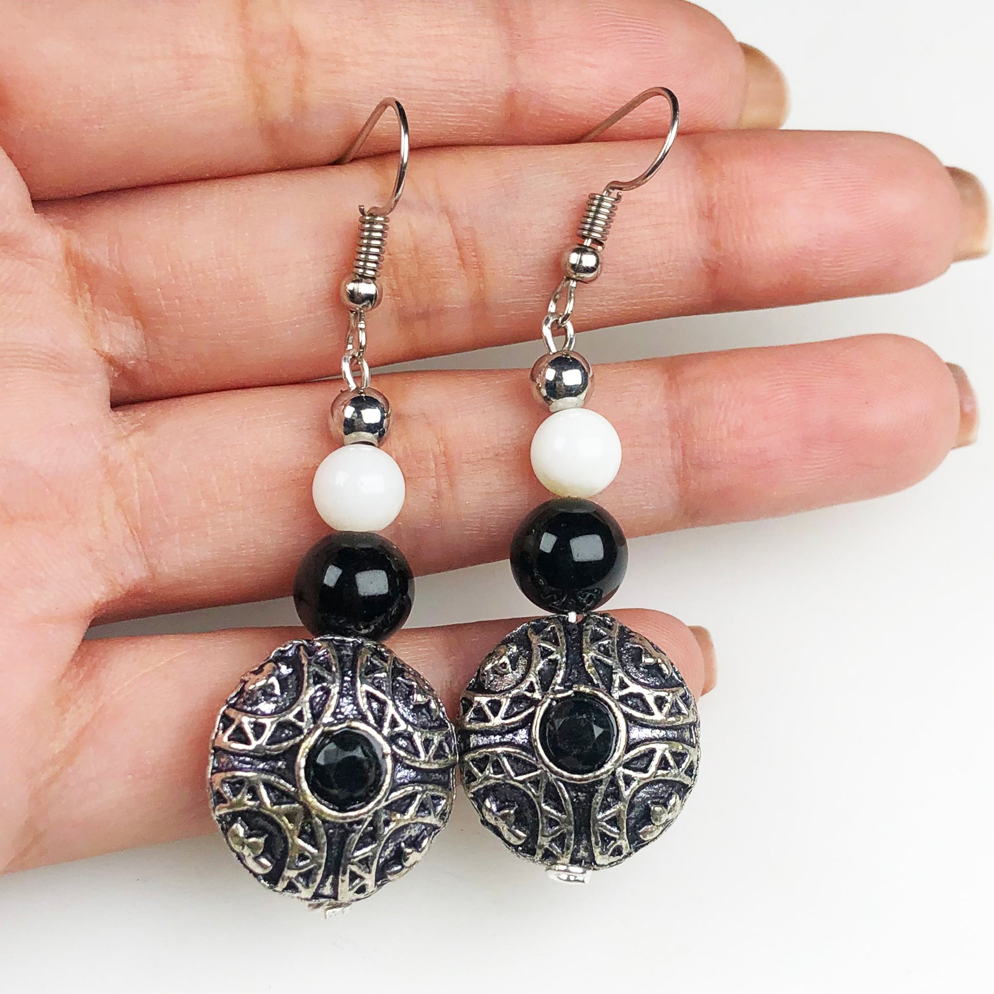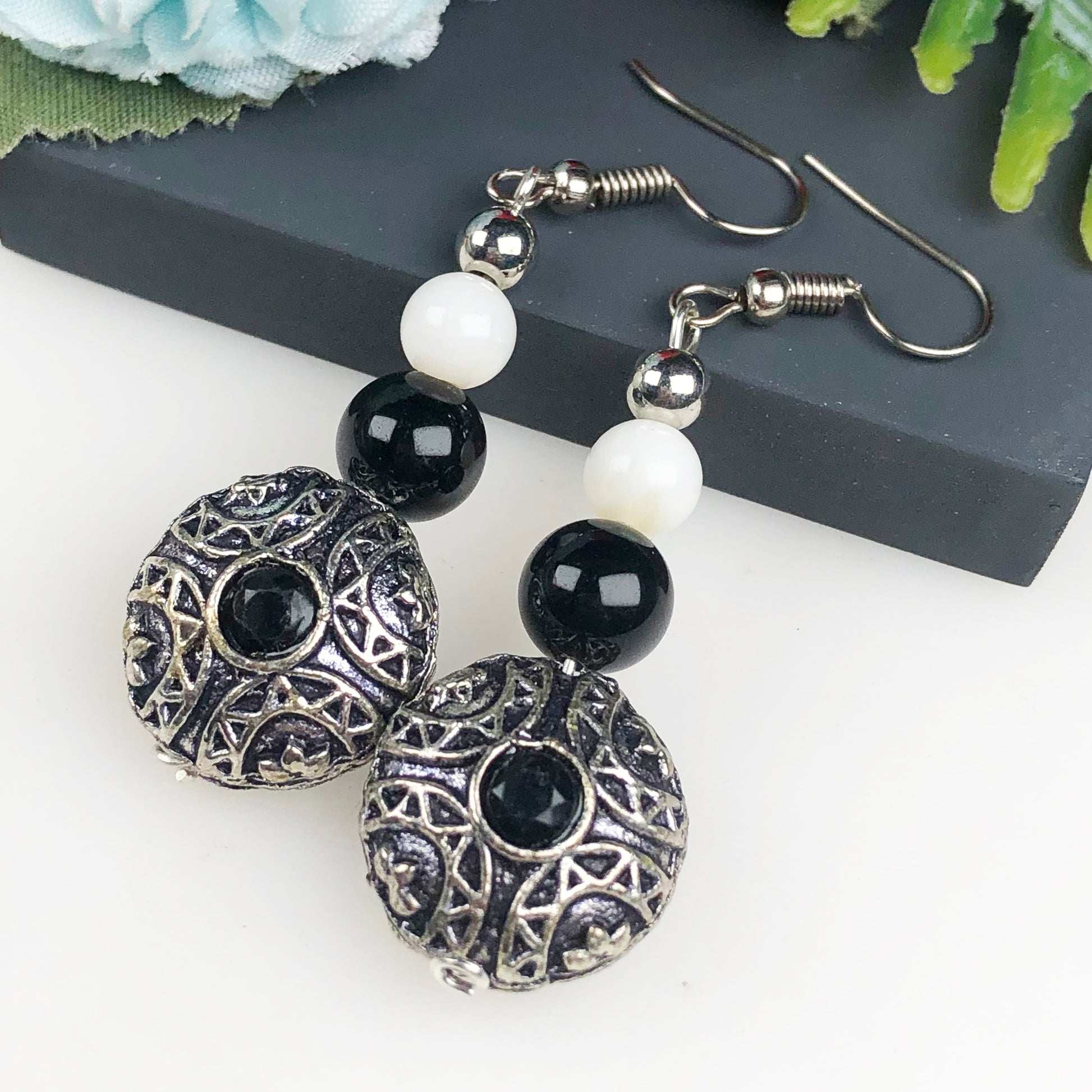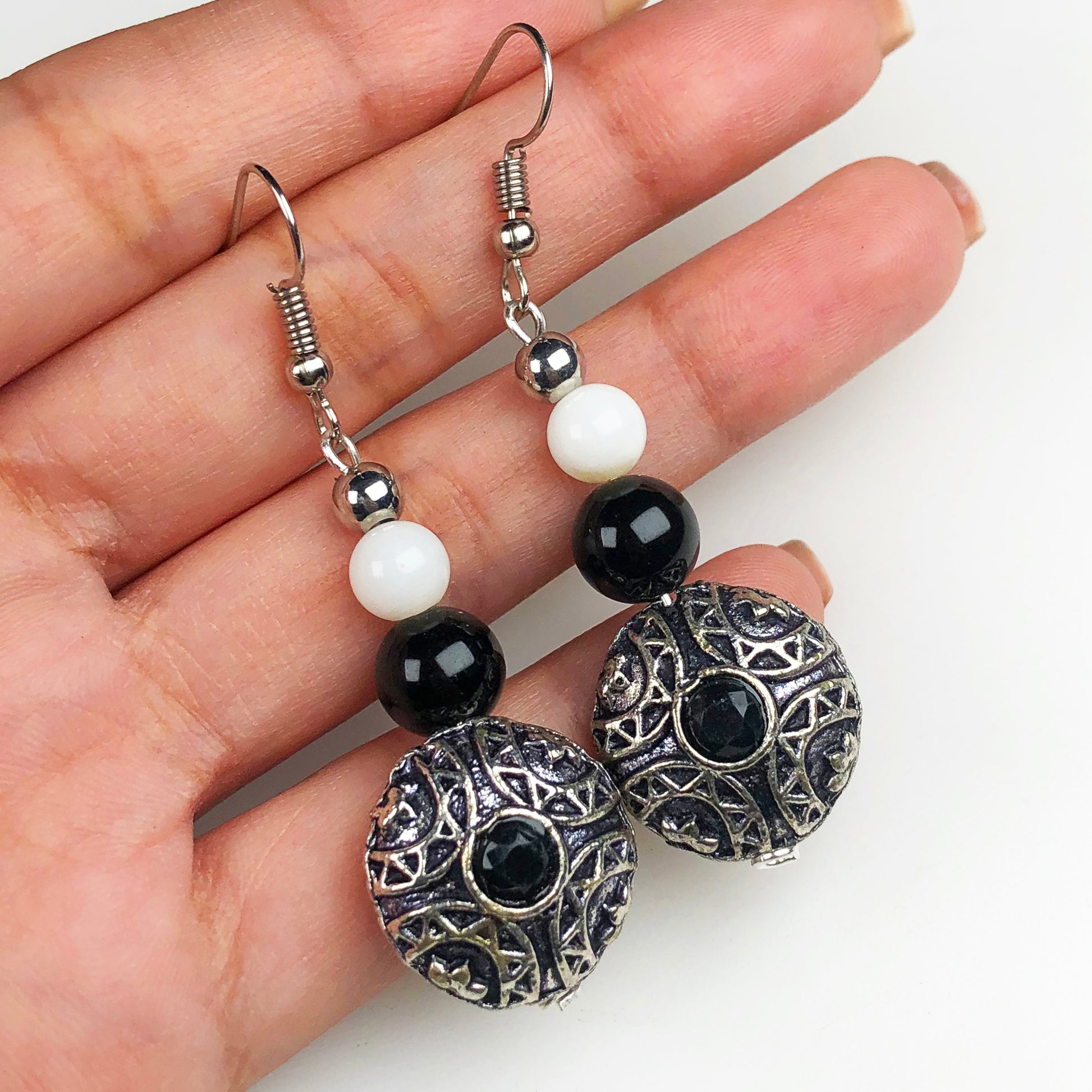 Natural Gemstone Dazzling Obsidian and Onyx Earrings for Women and Girls