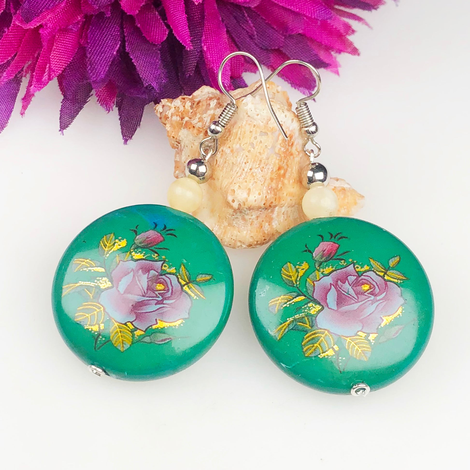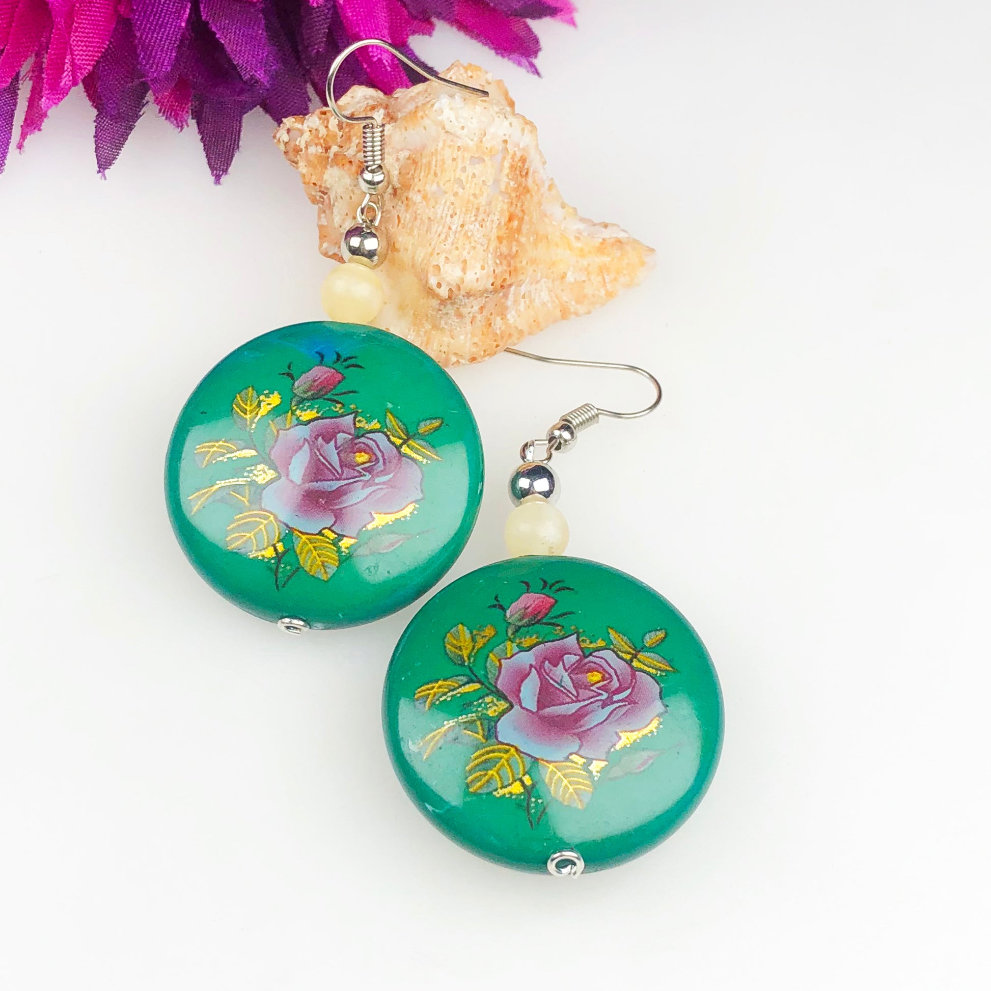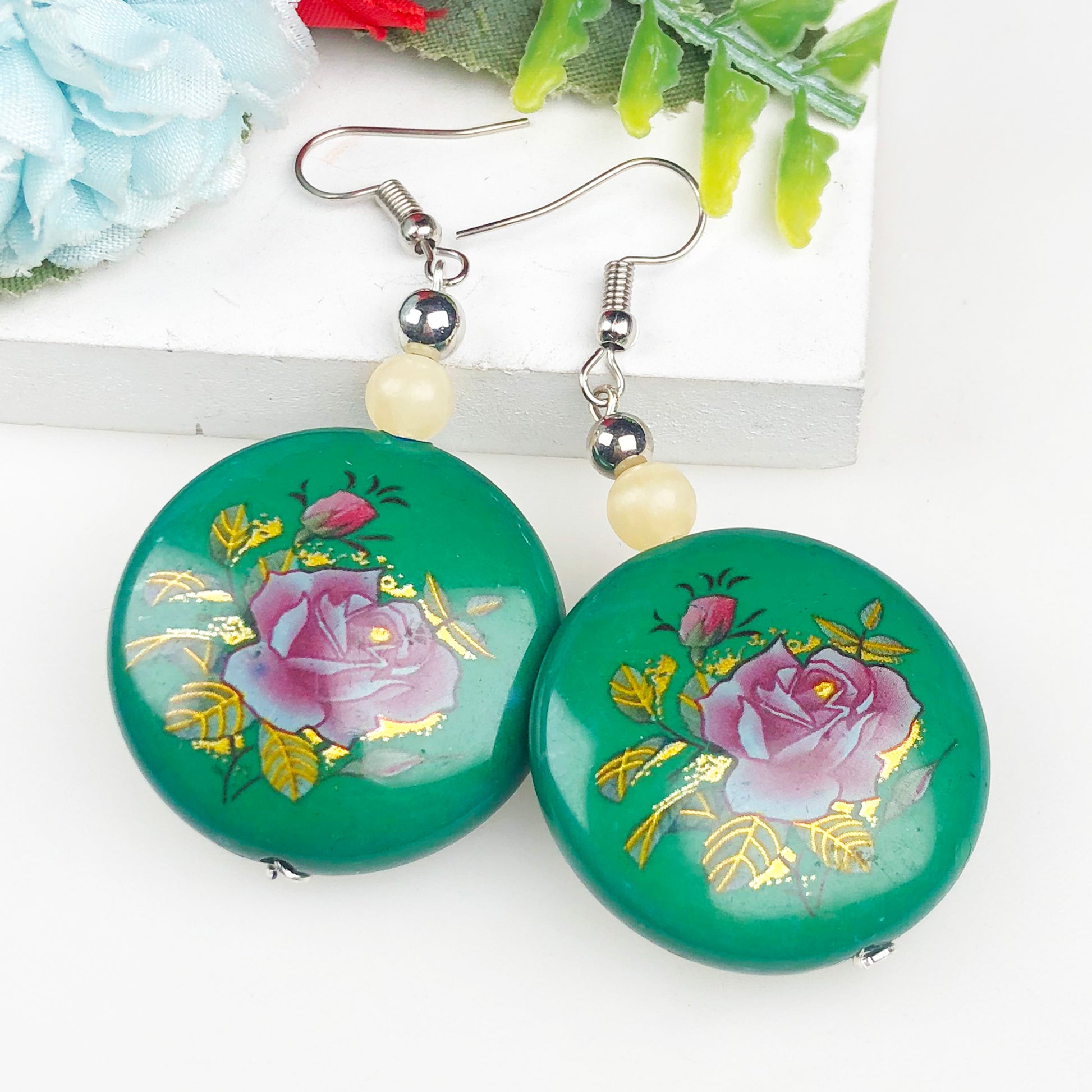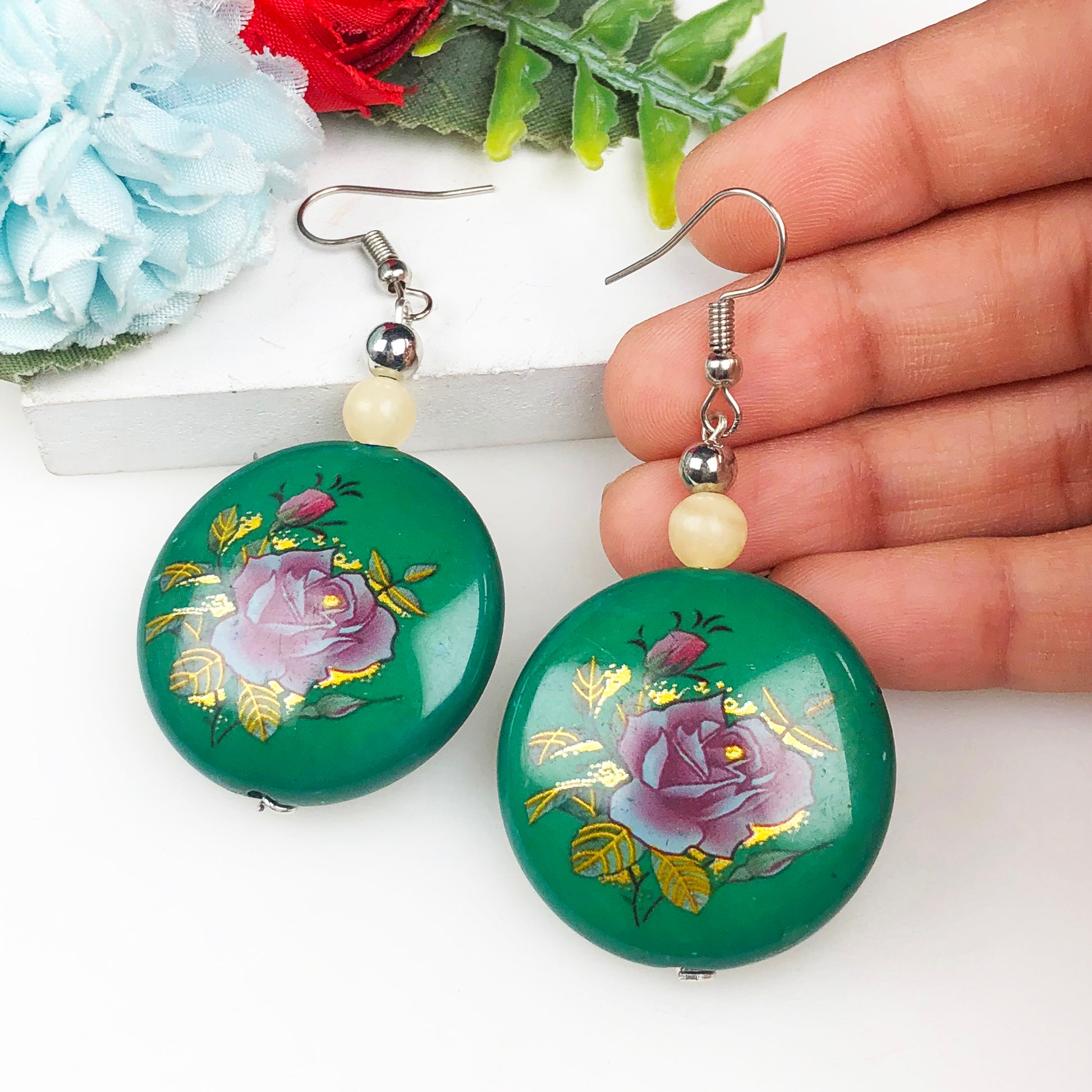 Natural Gemstone Expressive Agate abd Tensa Beads Earrings for Women and Girls