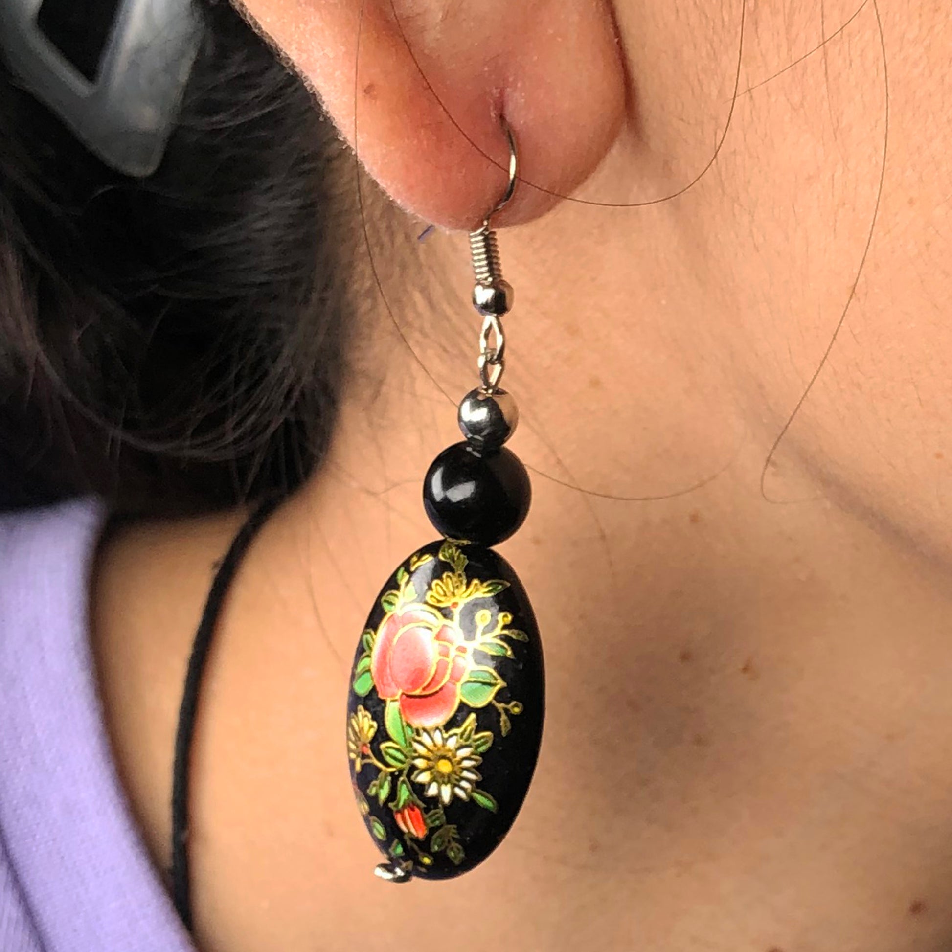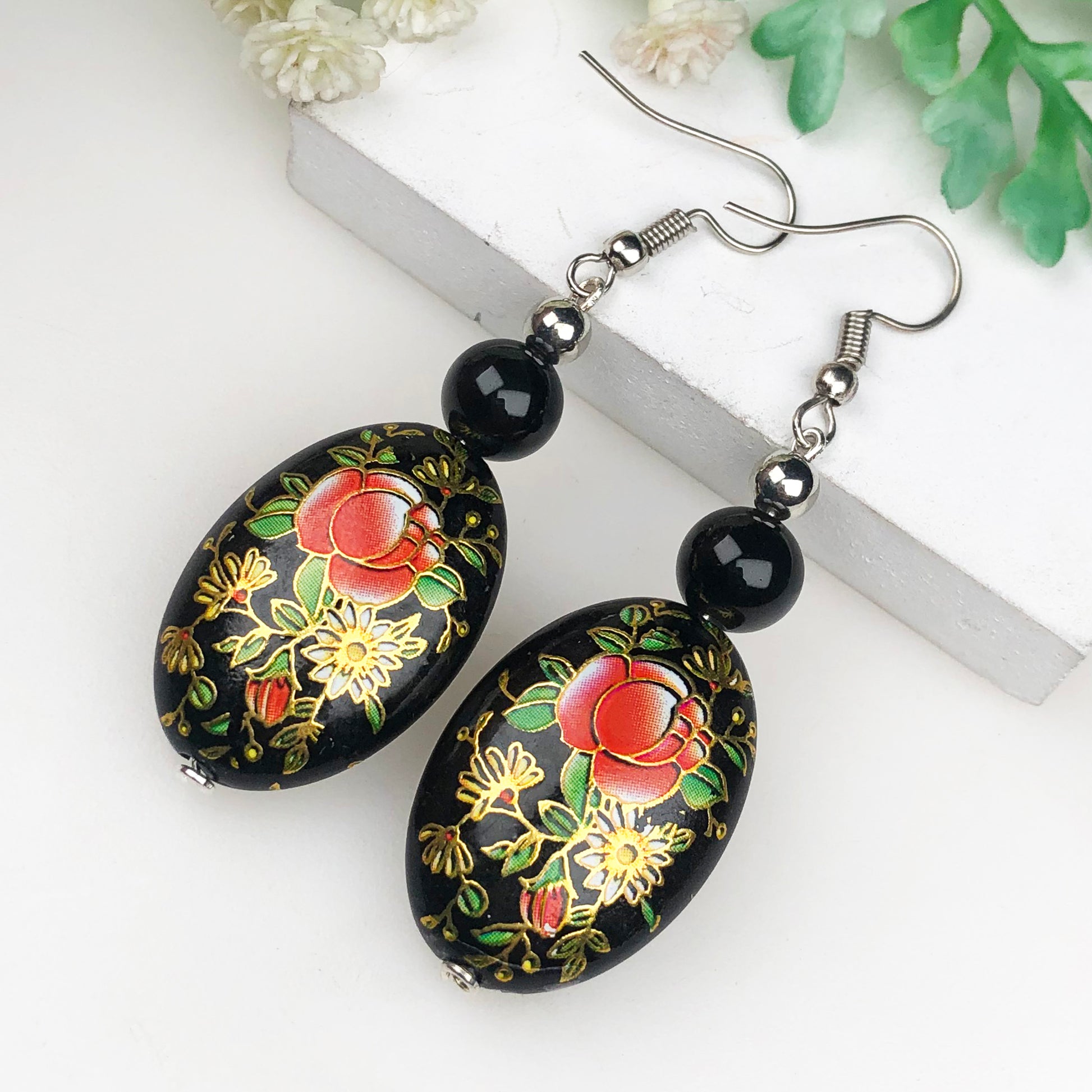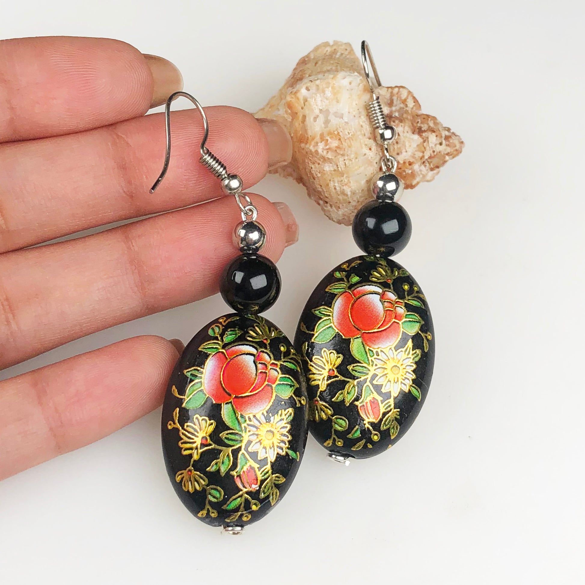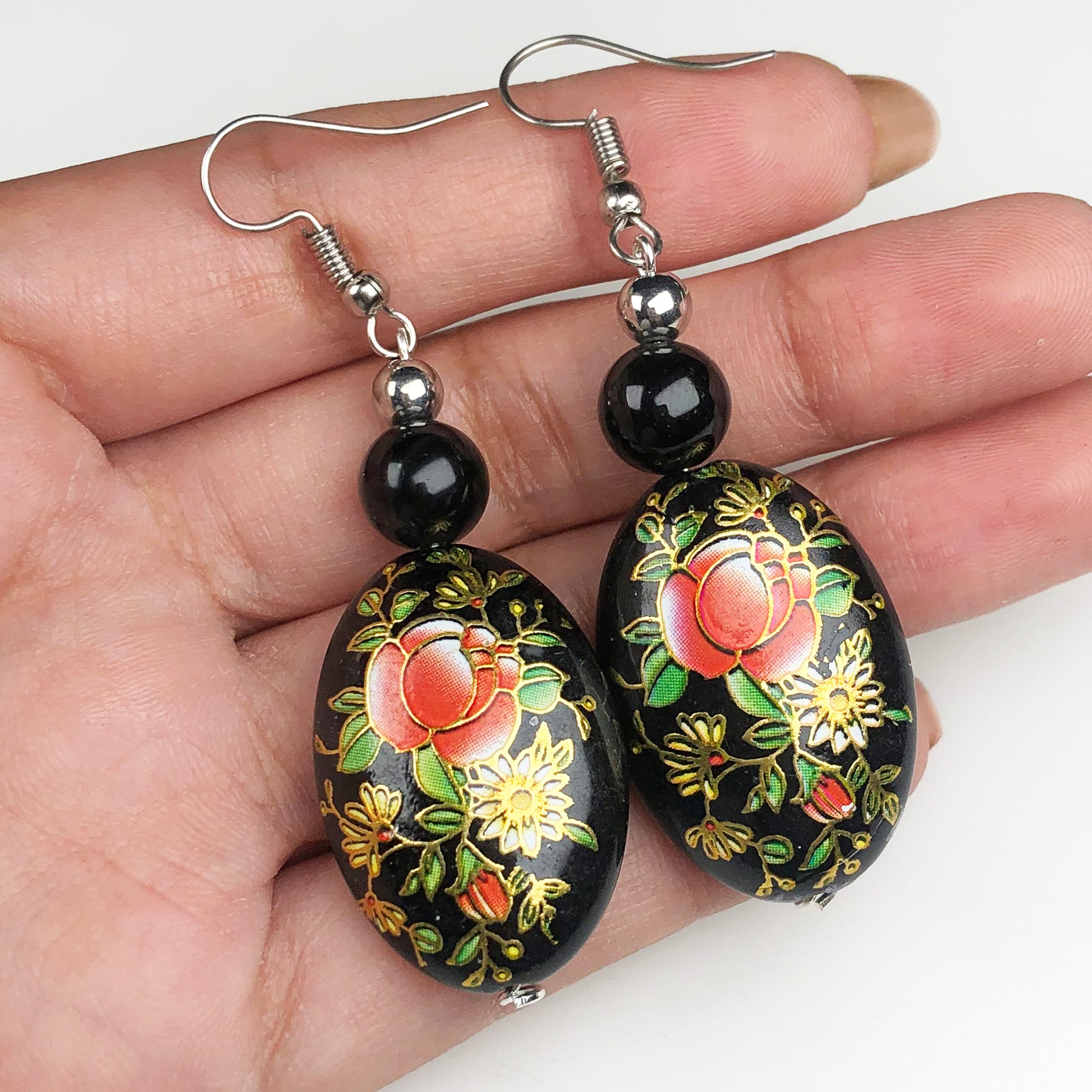 Natural Gemstone Gracious Obsidian and Tensa Beads Earrings for Women and Girls