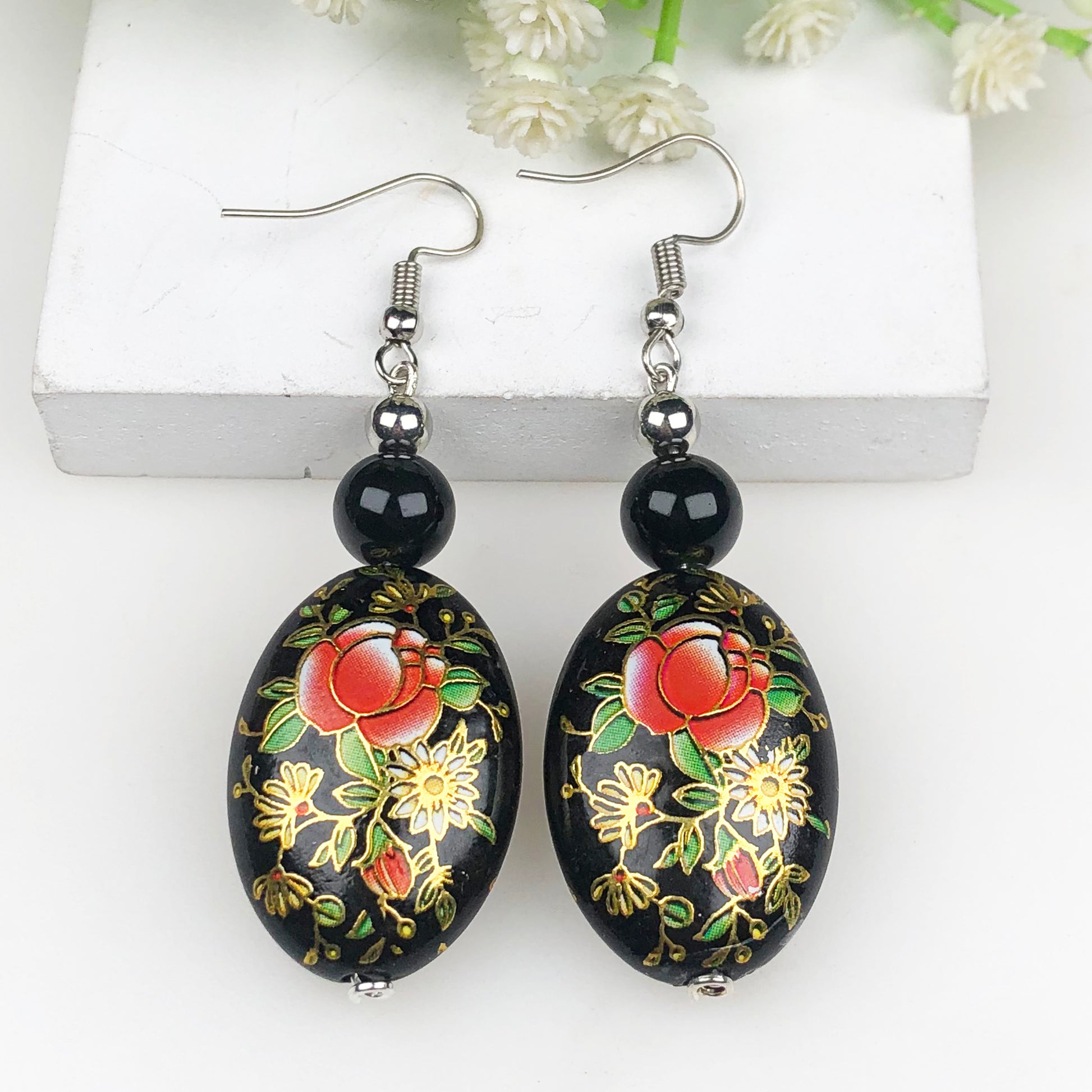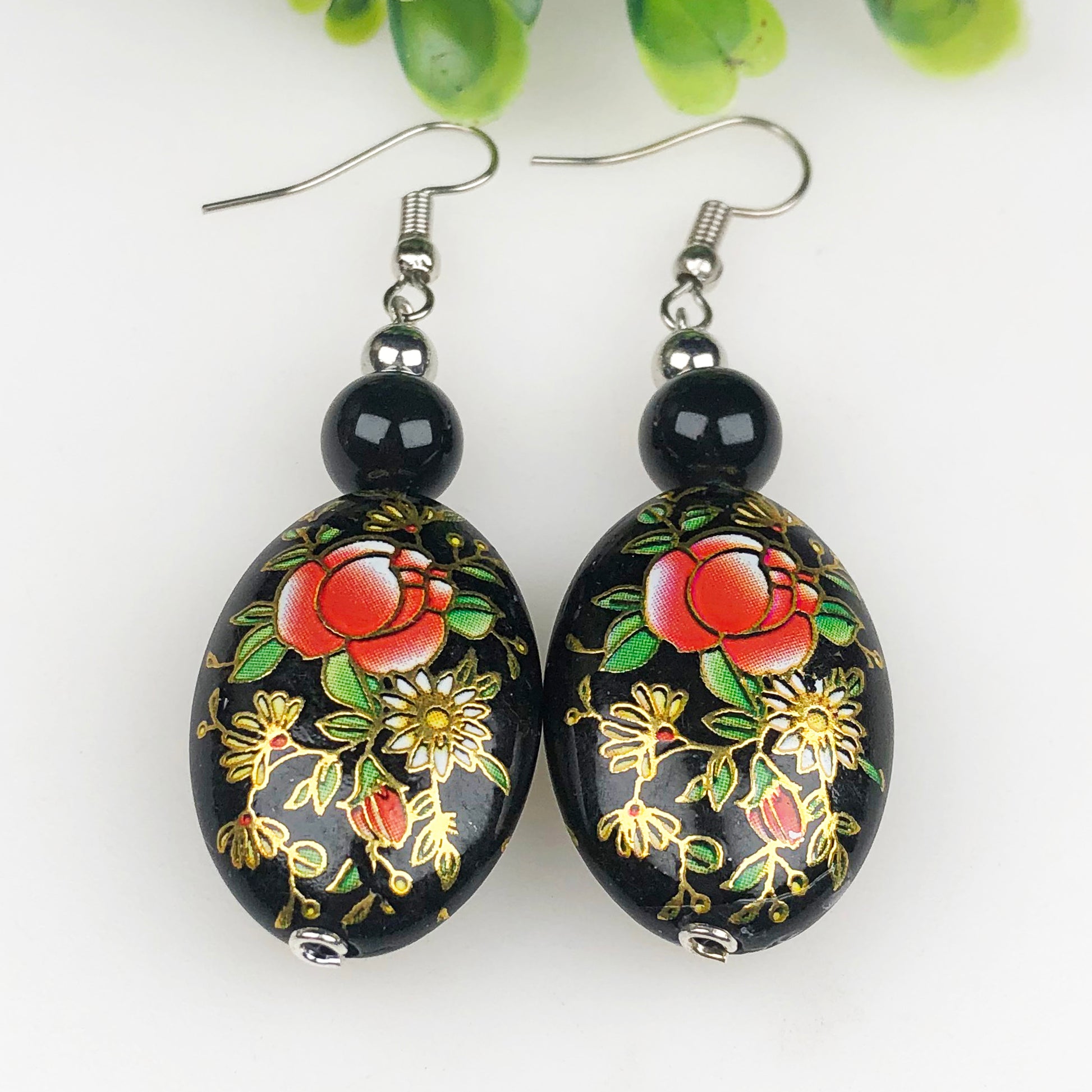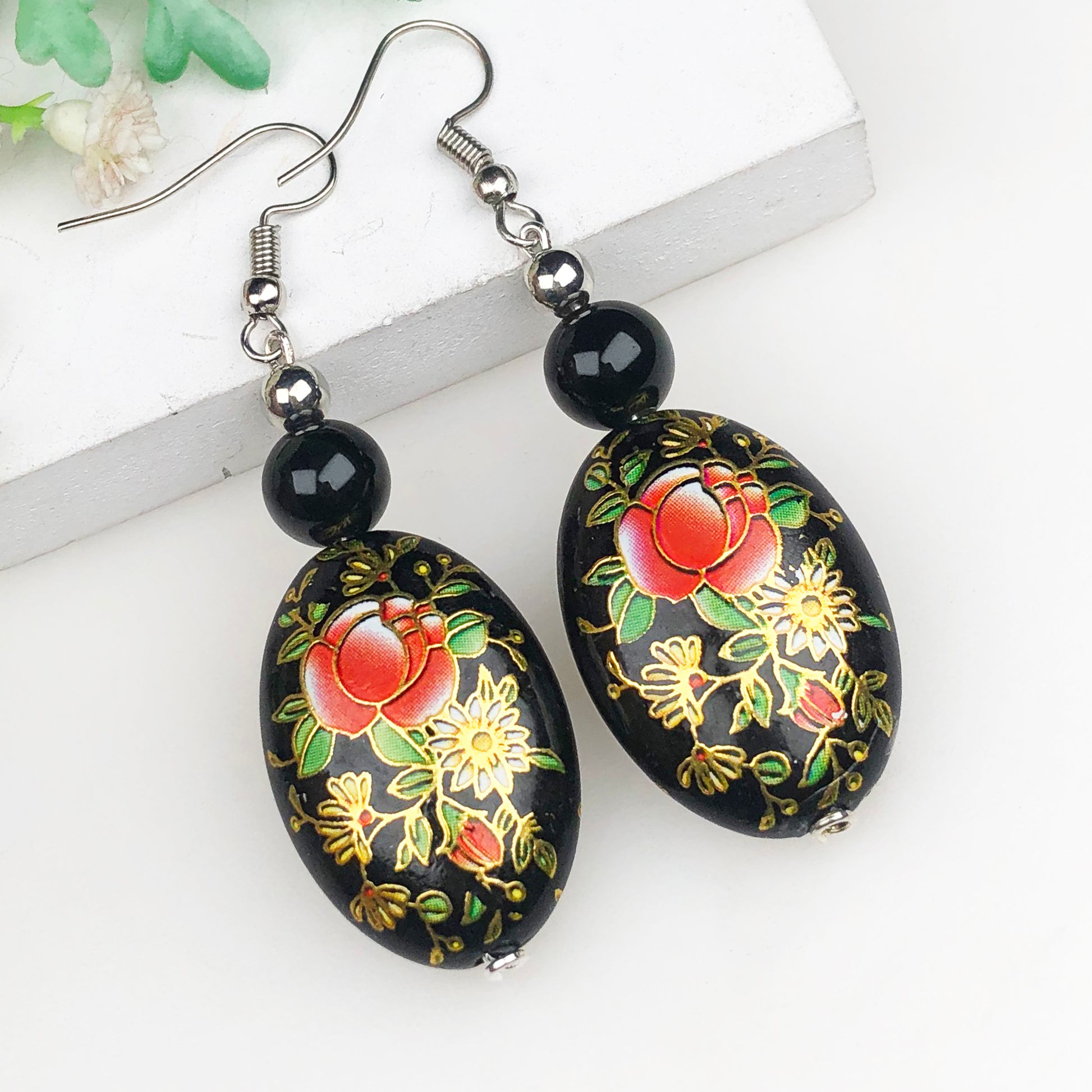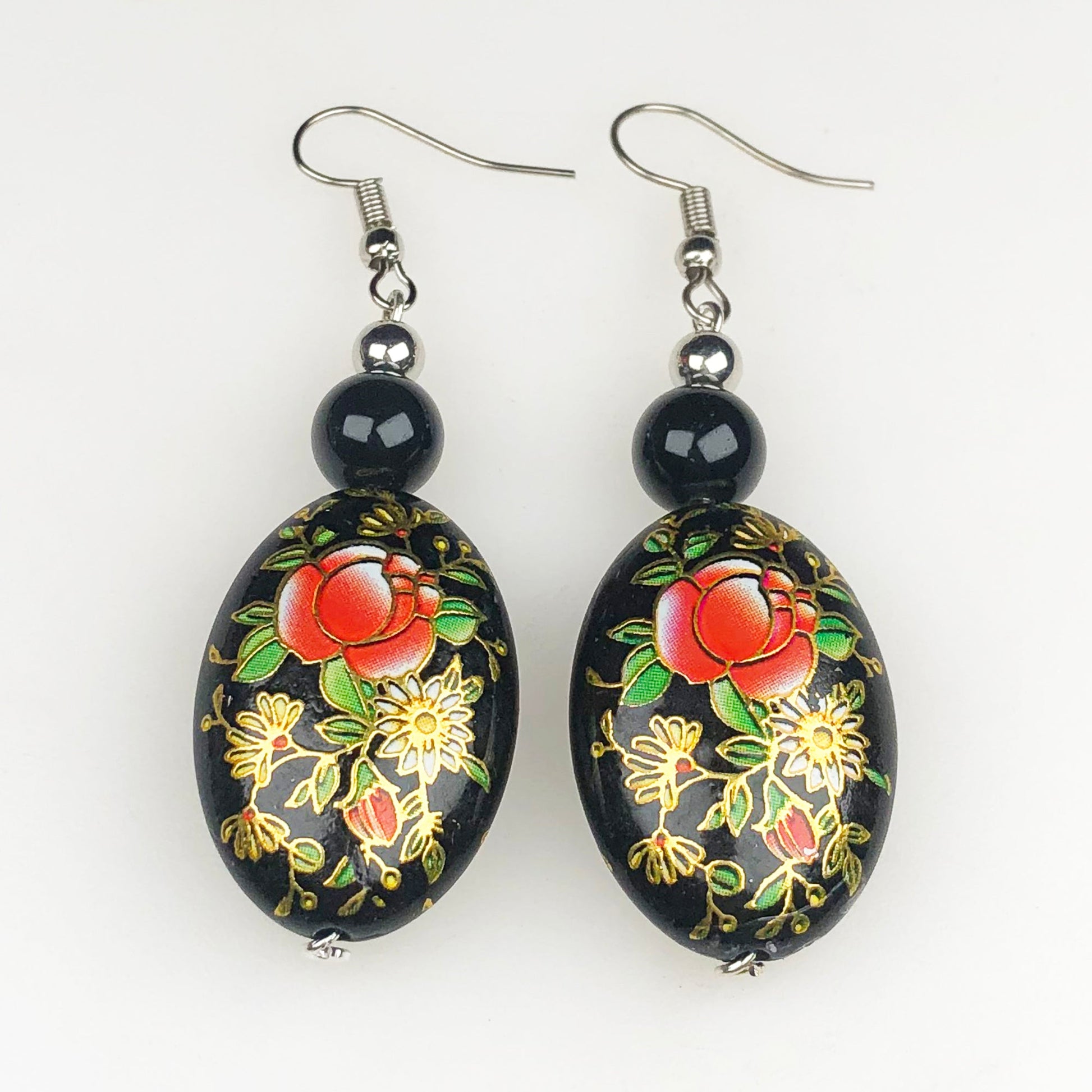 Natural Gemstone Gracious Obsidian and Tensa Beads Earrings for Women and Girls