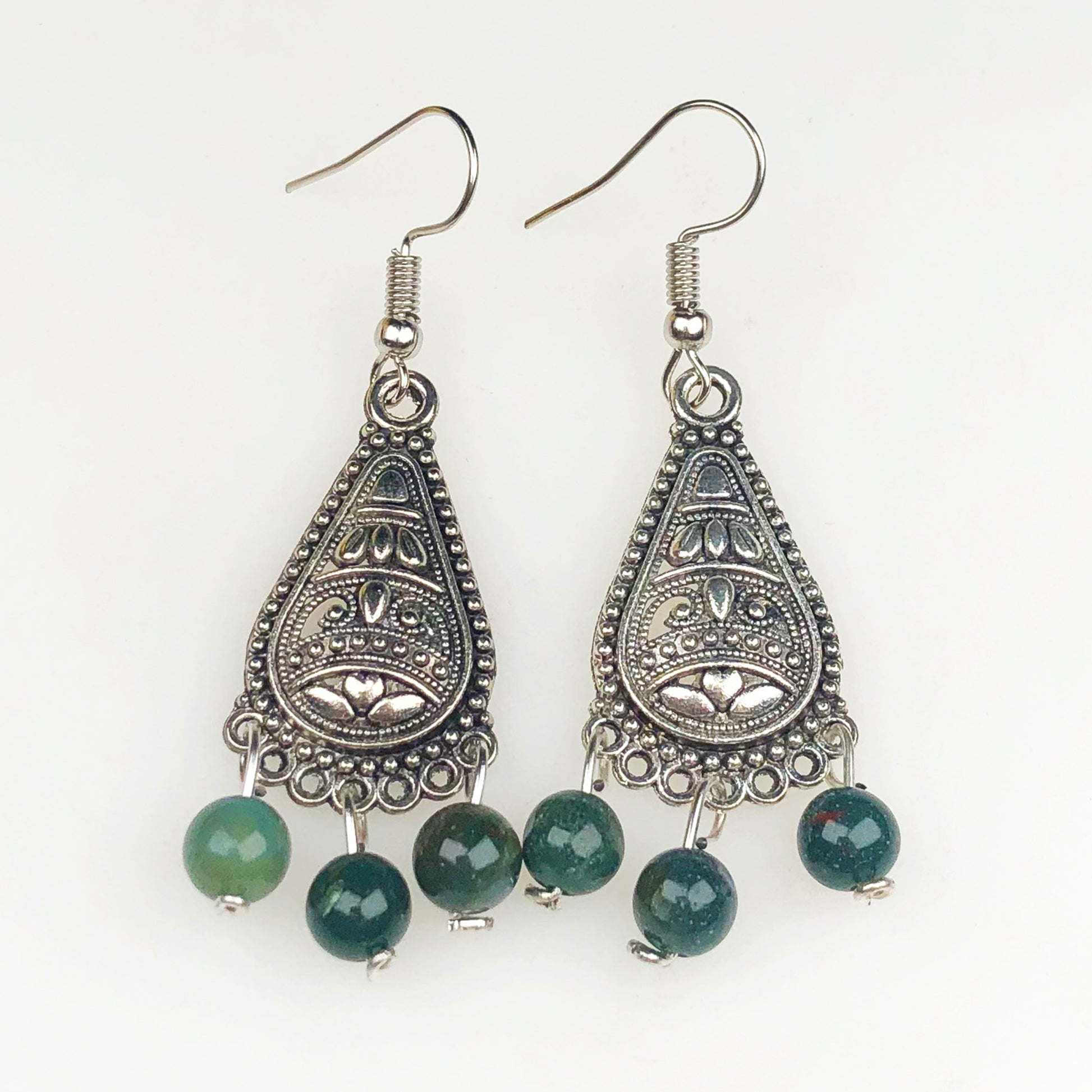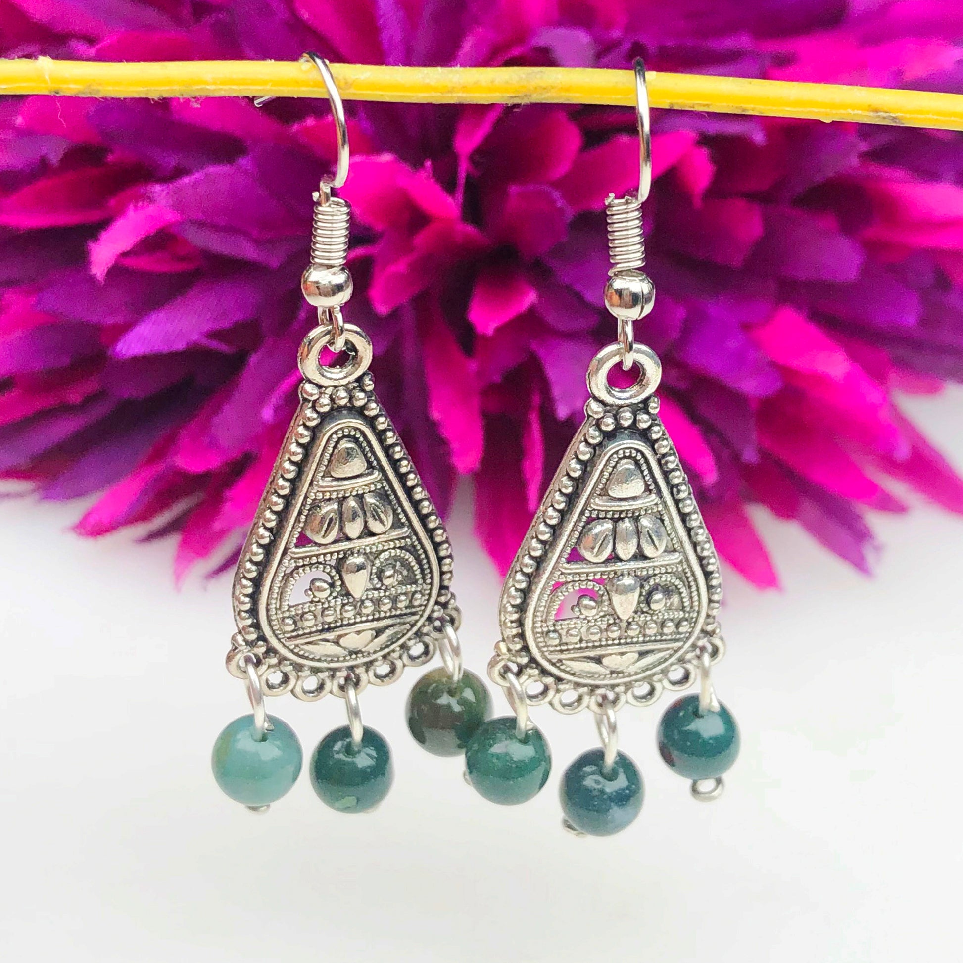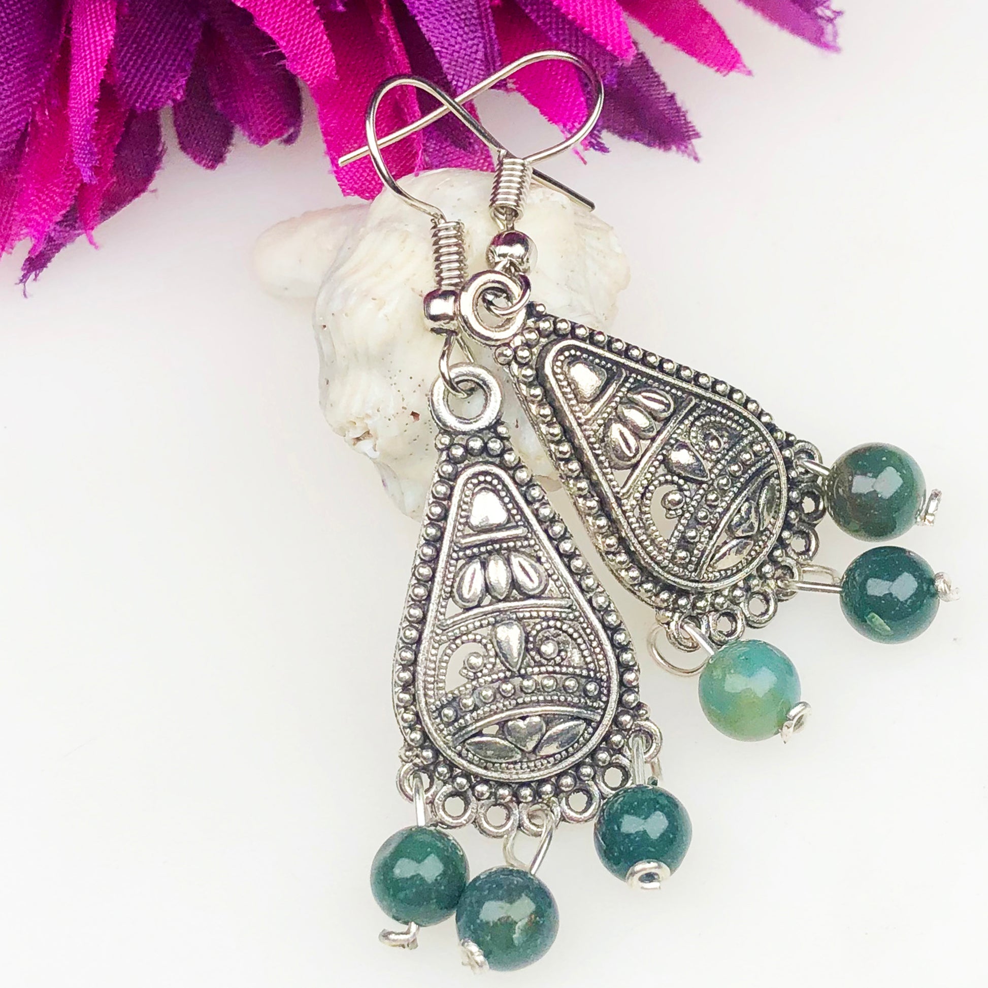 Natural Gemstone Green Ocean Jasper Earrings for Women and Girls