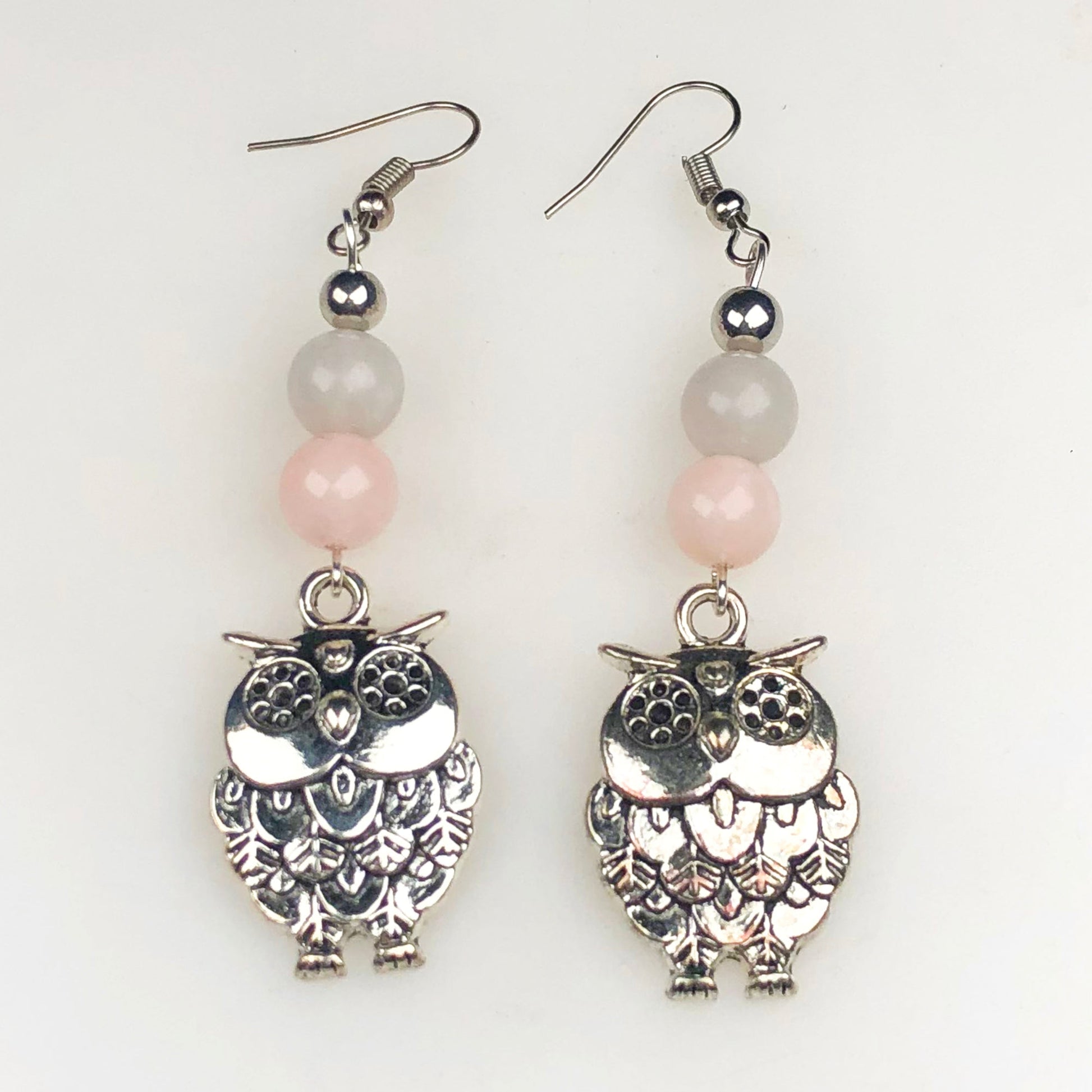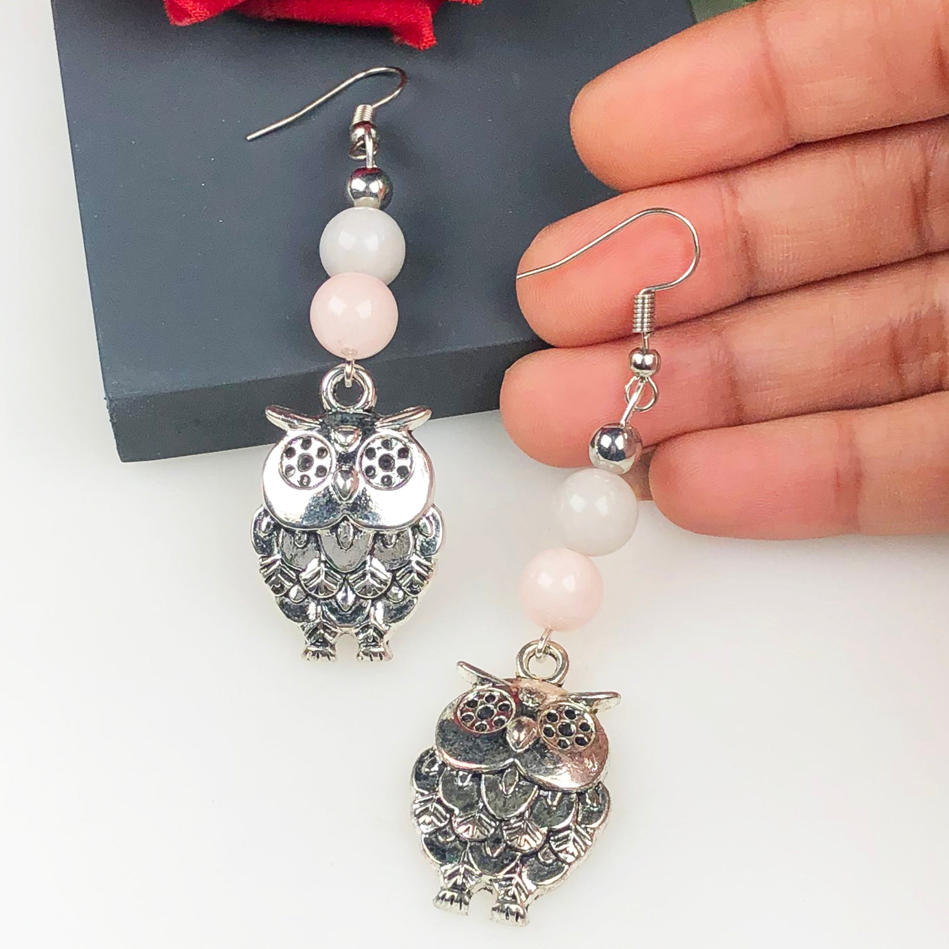 Natural Gemstone Incredible Pink Ruby and Obsidian Earrings for Women and Girls
