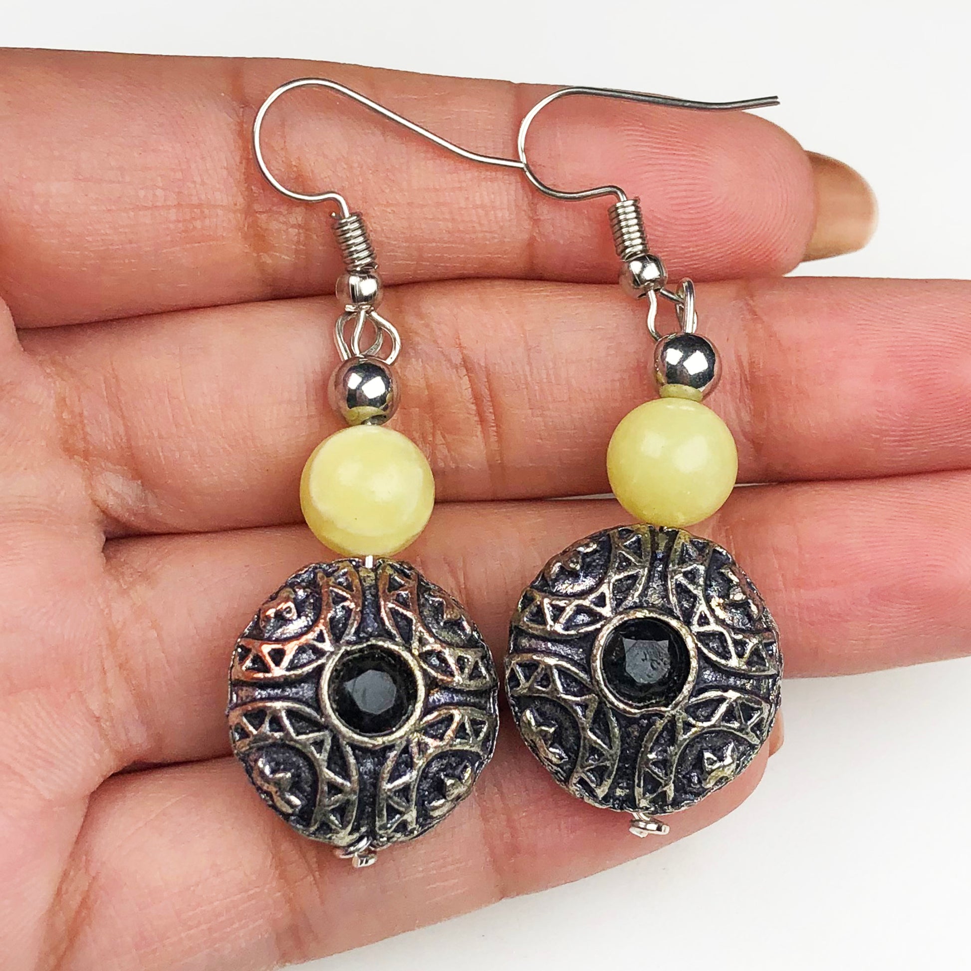 Natural Gemstone One of a kind Yellow Onyx and Onyx Earrings for Women and Girls