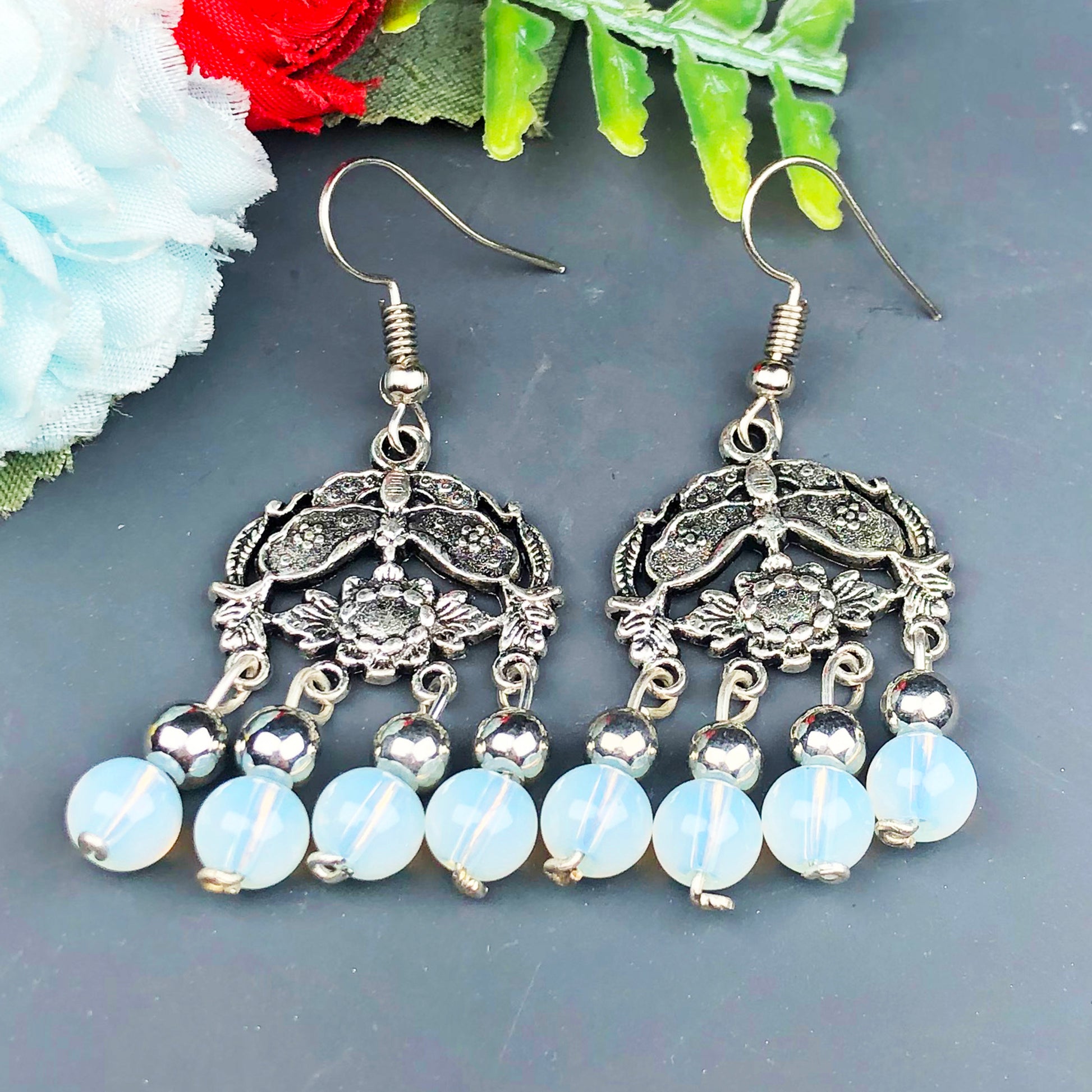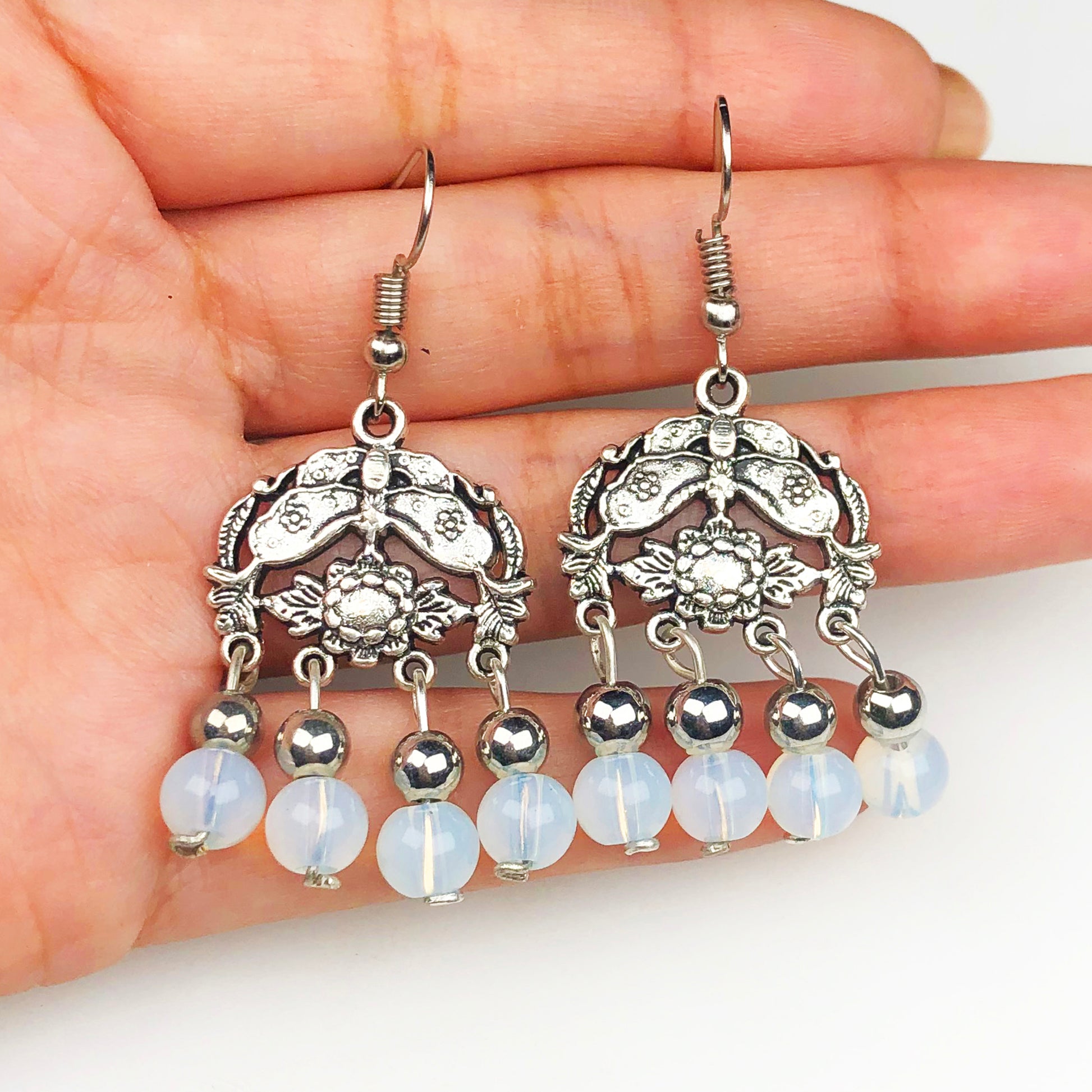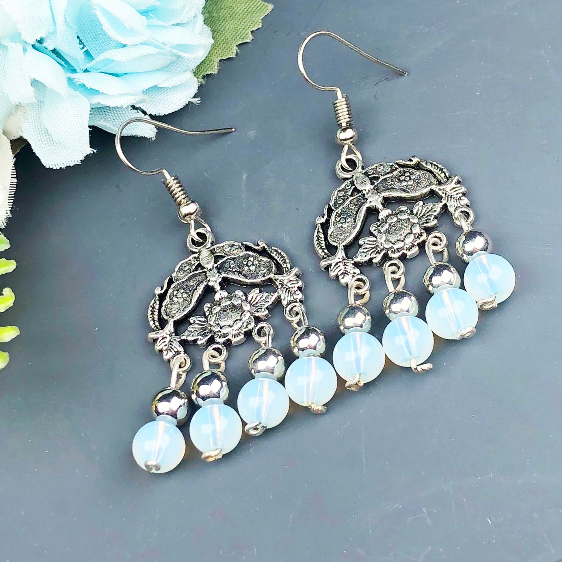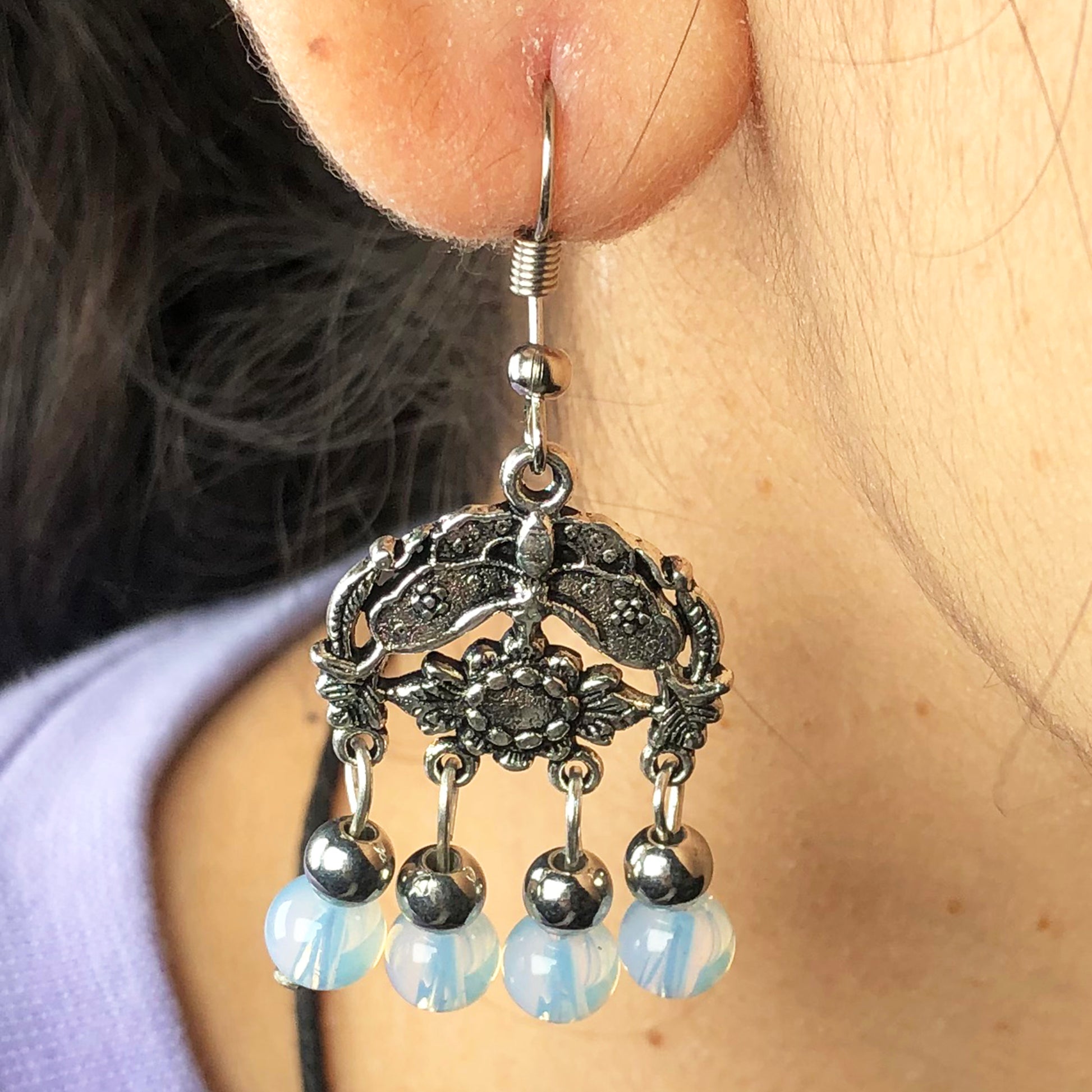 Natural Gemstone Opalite Earrings for Women and Girls